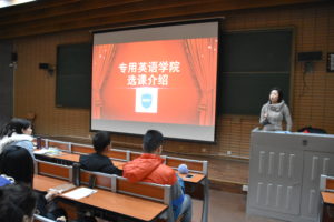 为认真贯彻落实新时代全国高等学校本科教育工作会议精神,提升非英语的外语专业学生的学习能力和学习水平,帮助学生做好即将开始的下学期大学英语的选课工作,在学校教务处统一领导和支持下,bat365官网于12月12日下午4:30在逸夫楼第一阶梯教室组织召开全校大学英语培养方案宣讲会。此次宣讲会有亚非、俄语、德语、日语、欧语、西葡、法语及阿拉伯语等8个院系的150多名学生参加。bat365官网院长助理廖鸿婧、办公室主任匡琳琳,以及学院教学办公室庄双和窦茹苑老师参加了本次宣讲会。此次会议由匡琳琳主持。