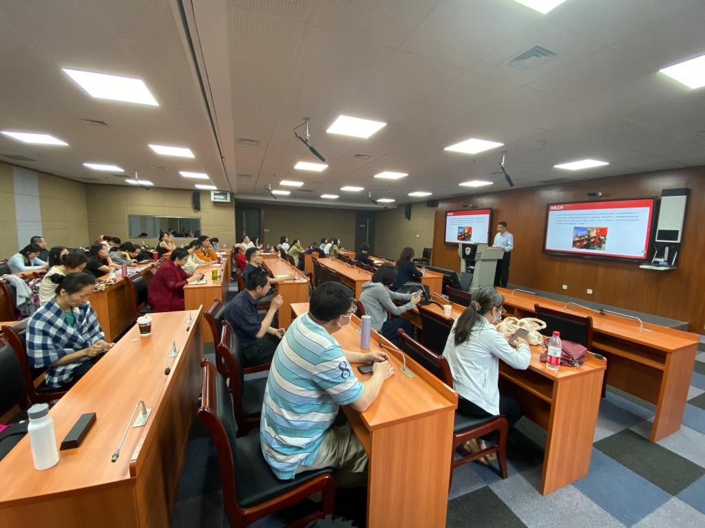 6月25日上午,bat365在线中国官网登录入口召开全体教职员工大会,总结本学期党建和业务工作。学院党总支书记蔡鸿作了报告发言,学院党总支副书记、院长侯俊霞主持会议,全院40余名教师参加了大会。