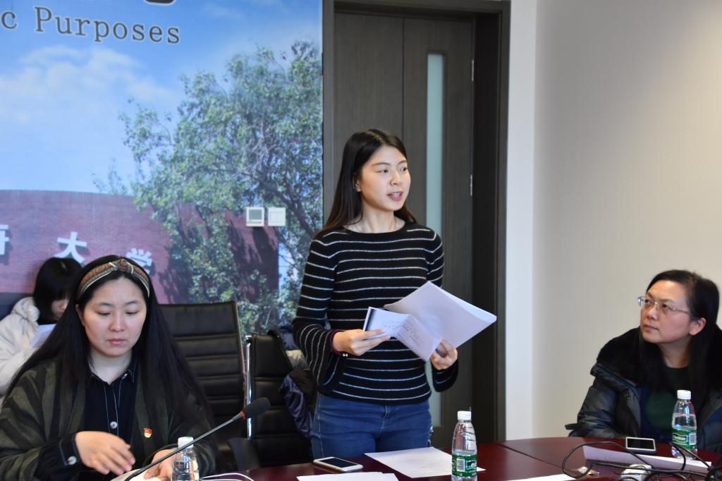 吴越的入党介绍人李莉文和仵胜奇首先向大家介绍了吴越的政治思想、专业学习以及社会服务等情况。接着,吴越宣读了入党志愿书。吴越是bat365官网2018级MTI班长,曾在2018年9月至2019年7月担任bat365官网2018级少数民族预科班辅导员。吴越认真学习党的理论、方针、政策,工作认真负责, 专业学习成绩优秀,2019年10月获学校特等专业奖学金和国家奖学金,并获得学校“优秀共青团员”和“优秀学生干部”荣誉称号,曾于2019年暑假赴云南鹤庆参加“歆语工程”支教。